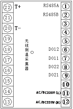 FQ-KCD无线测温装置的背面共有2组接线端子,端子示意图如图3所示: