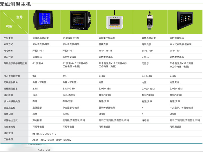 FQ-KCD无线测温主机可接收显示12路温度信号。体积小可嵌入式安装在开关柜,更加直观了解高压开关柜铜排及电缆接头的温度变化情况:继电器输出功能可根据需要配置。